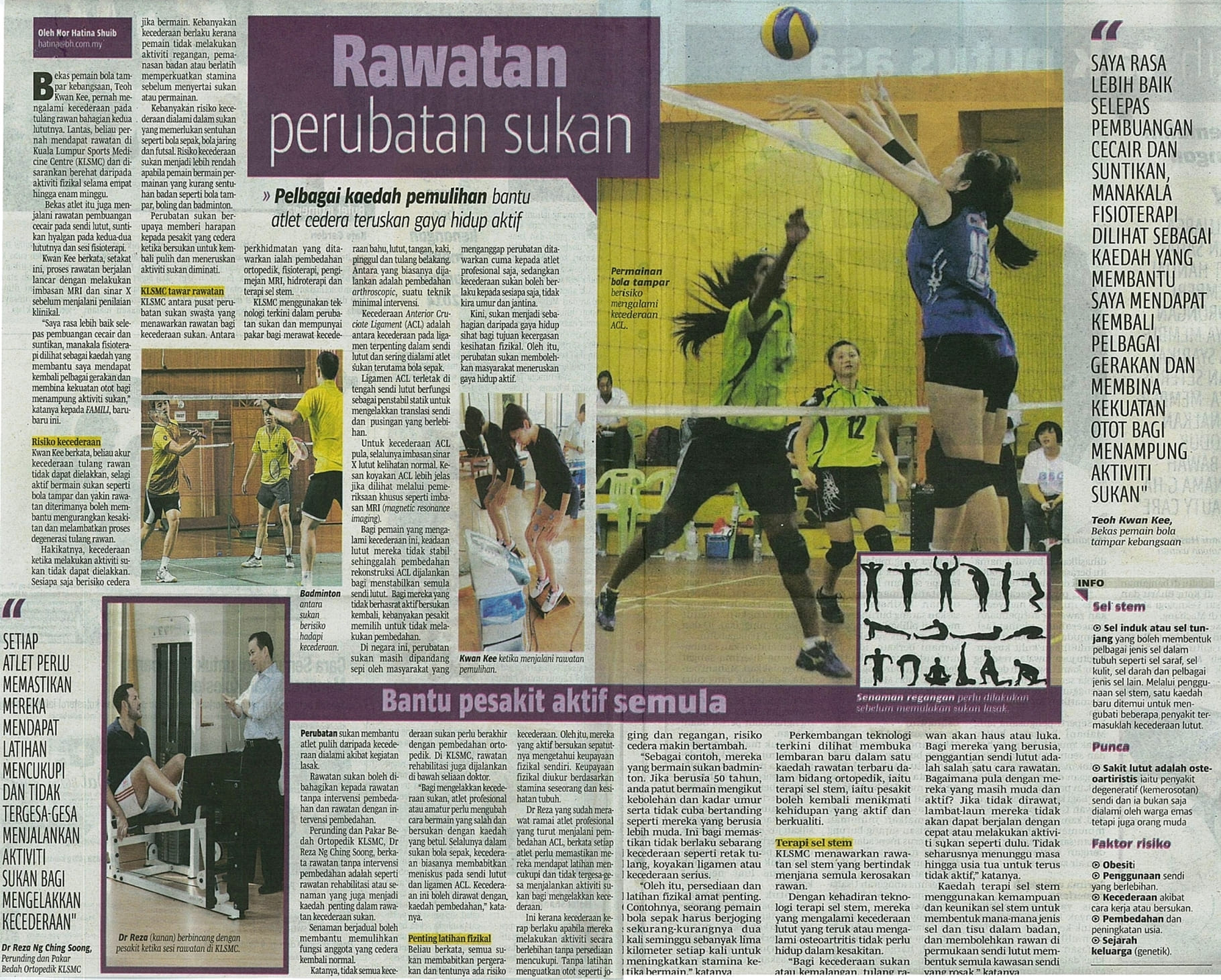• [Berita Harian] Rawatan Perubatan Sukan – Bantu pesakit aktif semula