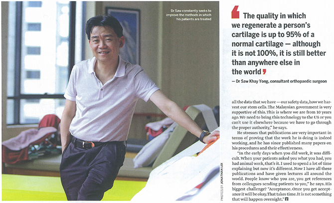 “The quality in which we generate a person’s cartilage is up to 95% of a normal cartilage – although it is not 100%, it is still better than anywhere else in the world” – Dr. Saw Khay Yong, consultant orthopaedic surgeon.