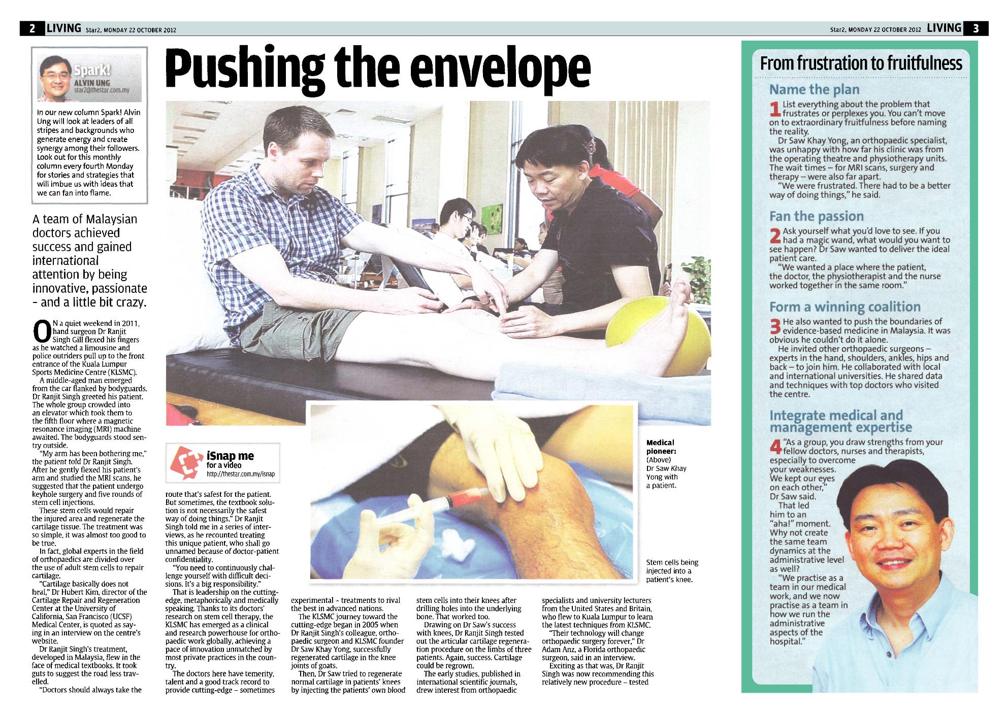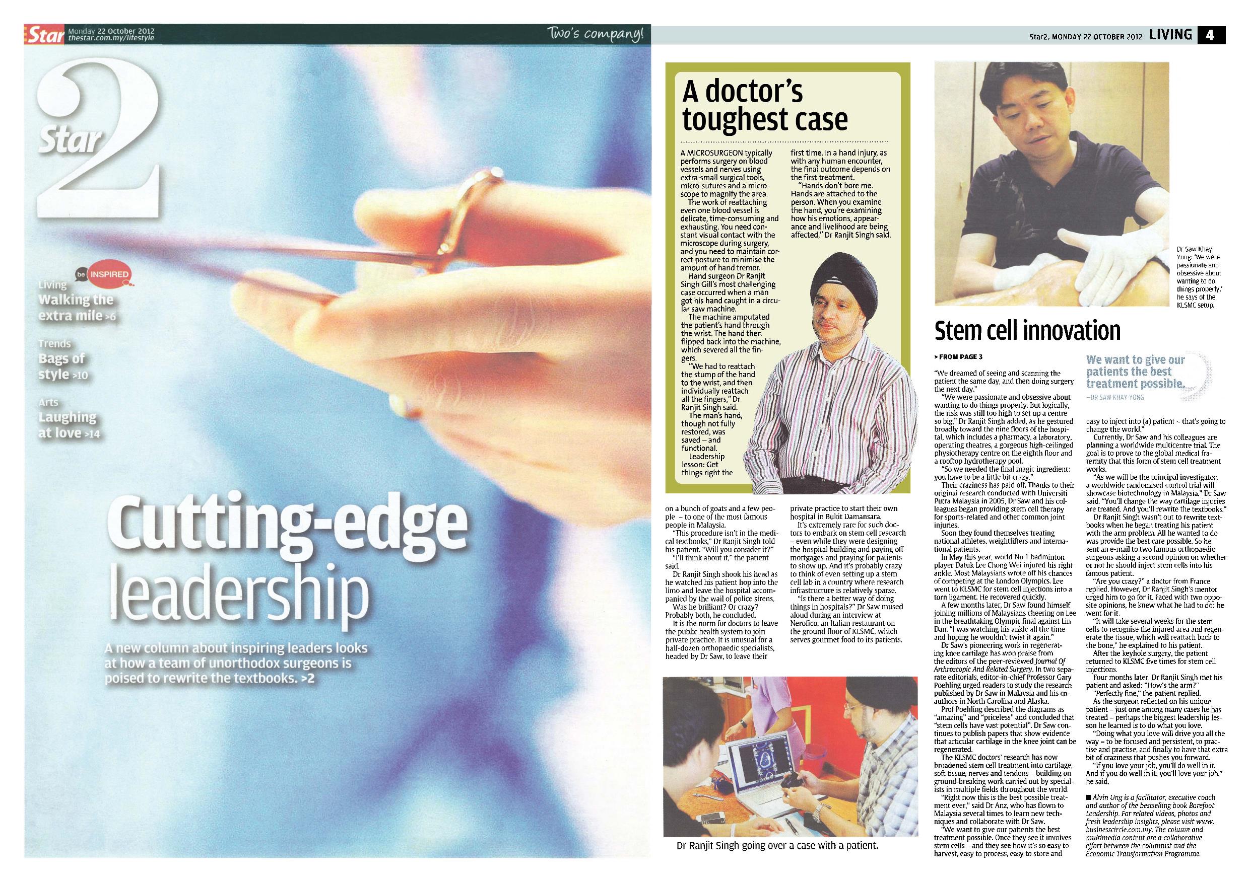 That is leadership on the cutting-edge, metaphorically and medically speaking. Thanks to its doctors’ research on stem cell therapy, the KLSMC has emerged as a clinical and research powerhouse for orthopaedic work globally, achieving a pace of innovation unmatched by most private practices in the country.