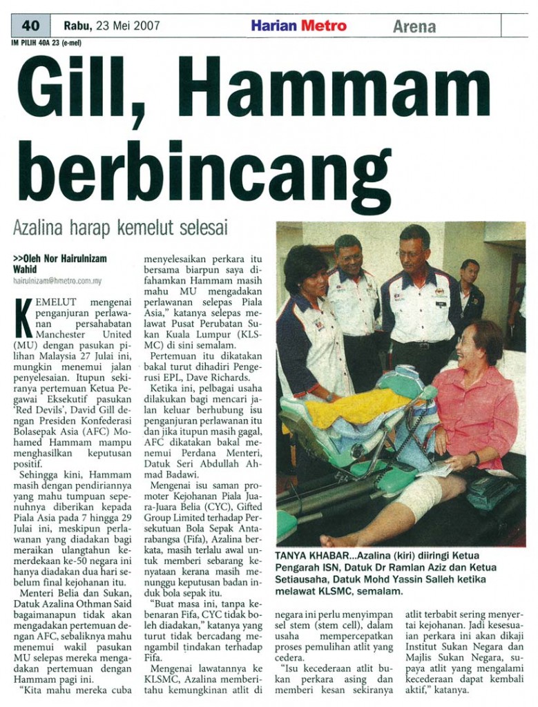 The article quotes Datuk Seri Azalina Othman as saying that national athletes may be required to deposit their stem cells before competing in any competition, in order to expedite recovery time in the case of injury. She said this after a visit to Kuala Lumpur Sports Medicine Centre (KLSMC).